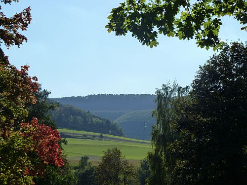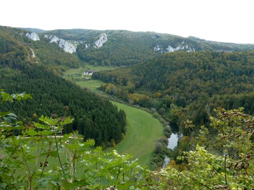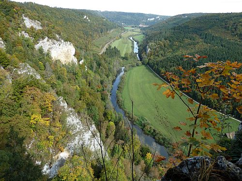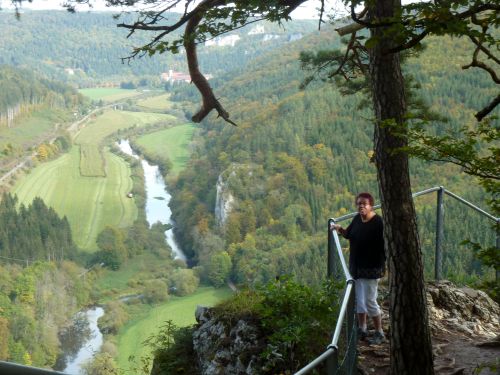 Man hat von hier oben einen herrlichen Blick ins Donautal, ganz hinten das Kloster Beuron,