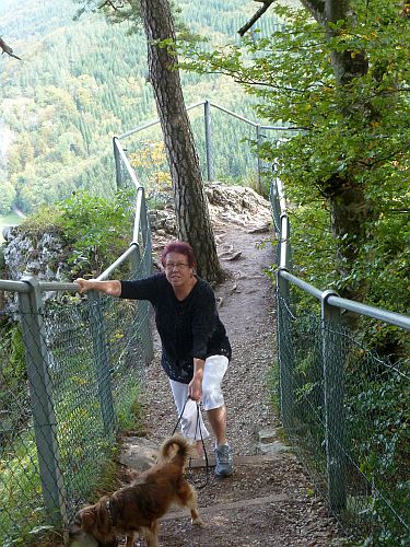 Der Weg geht bergab, und das schafft bestimmt auch unser kreuzlahmer Butzel. Naja, fast, bis auf die letzten 200 Meter. Da warens nämlich Treppen. Ab hier nehmen wir dann doch den Shuttle bis runter und sind gottfroh, dass wir wieder im Auto sitzen. Nee, solche Menschenansammlungen müssen nicht sein, und mit Bruno können wir die restlichen geplanten Unternehmungen dieses Urlaubs knicken.