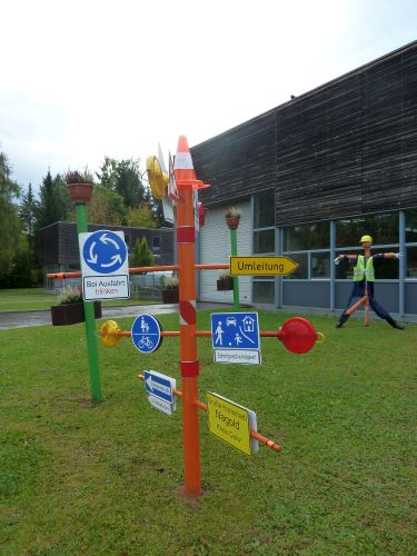 Der Stellplatz liegt am Stadtrand gegenüber vom Bauhof, und damit wir trotzdem eine nette Aussicht haben, wurden hier Kunstwerke aufgestellt.