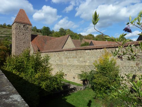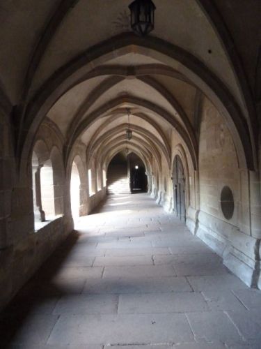 Hinter diesen Mauern verbergen sich einige Gaststätten, Teile der Stadtverwaltung, die Klosterkirche, die gerade renoviert wird, ein Gymnasium mit Internat und einige Läden. Wir sind überrascht, wie riesig das Gelände ist.