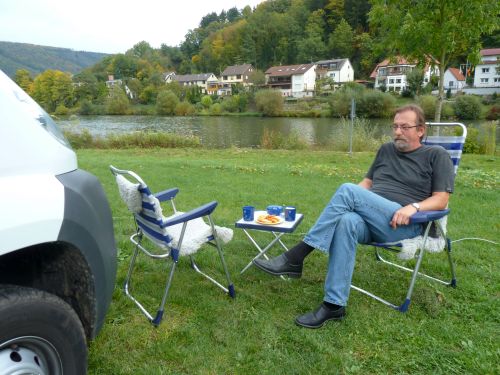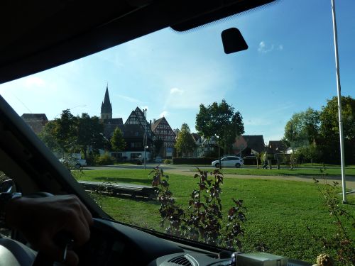 Wenns nach Bruno ginge, würden wir hier auf dem Parkplatz übernachten, denn so begrüßt er normalerweise neue Übernachtungsplätze. Aber noch haben wir das Sagen und fahren weiter nach Eppingen.