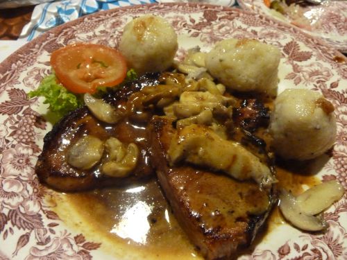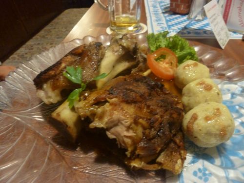 und ich ein kleines leckeres Spanferkelchen, in Scheiben geschnitten und in Biersoße getunkt.