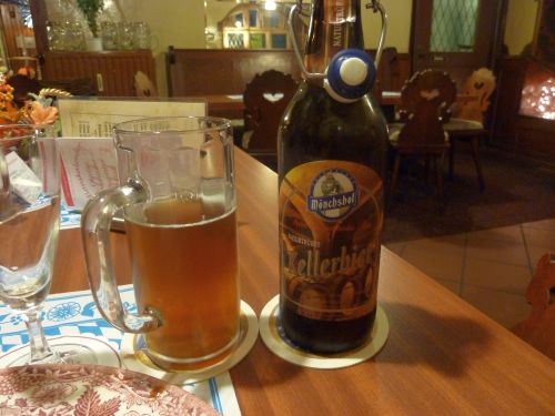 Das Urlaubsabschlussessen veranstalten wir im Hirsch. Ein Gasthaus aus 15hundertschlagmichtot. Bei den Bildern oben ist es das mit den blauweißen Rautenfahnen.