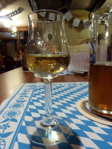 Zur Verdauung gibts für Peter nen doppelten Ouzo, und für mich einen besonders guten Birnenedelbrand.
