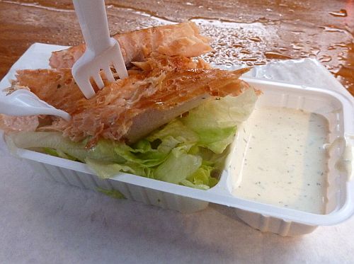 Hier gibts Flammlachs, da kann ich nicht widerstehen.
