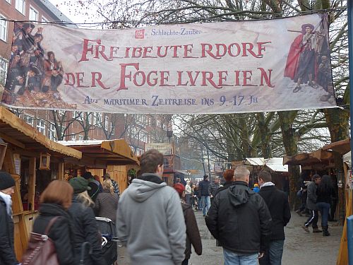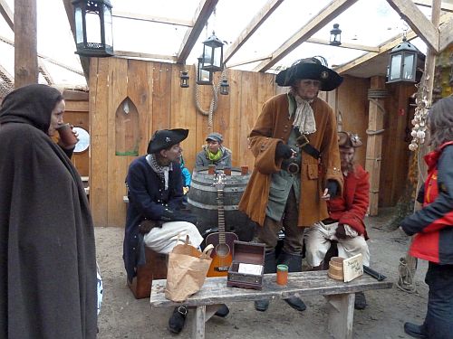 Und hier deckt sich Peter mit Proviant ein. Dann suchen wir den Freibeutermarkt und finden ihn unten an der Weser.