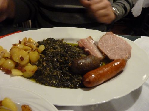 Plötzlich ists schon dunkel, Hunger stellt sich ein, und heute gehn wir wieder essen. Grünkohl und Pinkel kennen wir ja auch noch nicht.