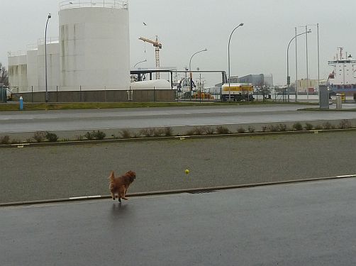 Jetzt darf Bruno erst mal Bällchen spielen, denn Platz ist genügend da.