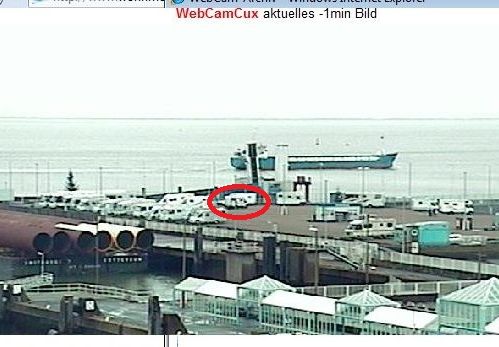 Als der gerade vorbeifährt, seh ich ihn gleichzeitig auf dem Laptop, als ich einen Screenshot von der Webcam machte, um festzuhalten wo wir stehen.