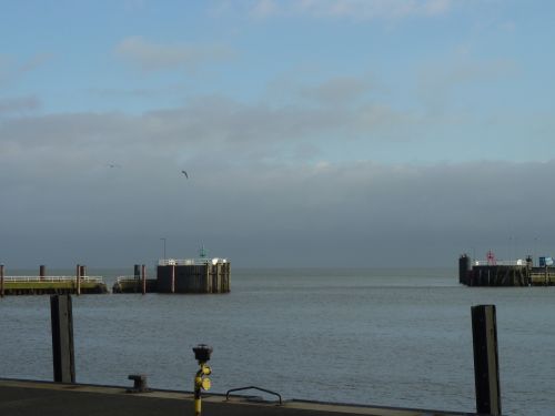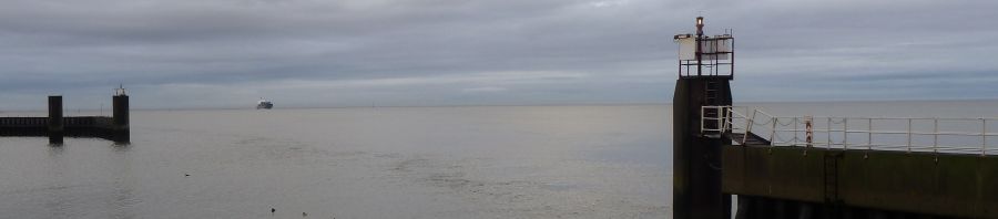 Jetzt sind wir ordentlich durchgeblasen, die Füße sind wieder mal nass, wir haben gesehen, was wir sehen wollten, und fahren weiter nach Cuxhaven auf die Platte am Fährhafen.