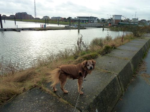 Nun ist Bruno genug gelüftet und wir machen uns ohne ihn auf den Weg in den Hafen, denn auf der Hundewiese toben auch heute wieder alle großen Hunde Cuxhavens.