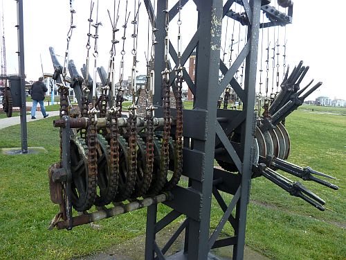 Die Zeiger werden über Kettenzüge gestellt und sagen in Zweierschritten die Windstärke an.