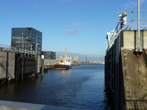Jetzt machen wir uns auf einen Erkundungsspaziergang durchs Hafengelände rund um den Stellplatz, und dabei wird uns klar, warum der Platz "die Platte" heißt.