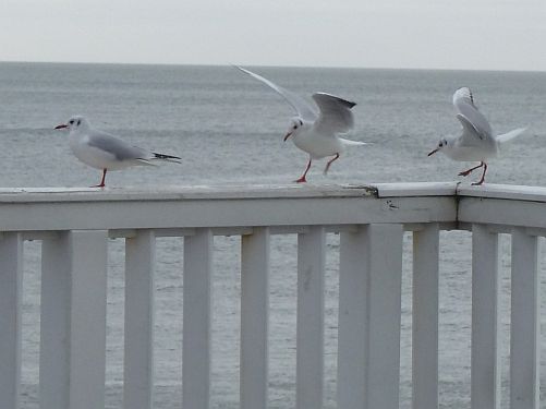 Natürlich sind die äußeren Plätze schon besetzt, aber wir finden eine Lücke mit Blick aufs Wasser.