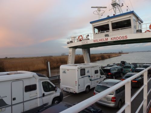 Eine Stunde später sind wir auf der Fähre nach Glückstadt.