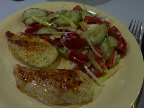 Zum Abendessen gibts heute Hühnerbrüstchen und Salat,