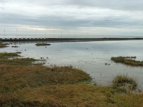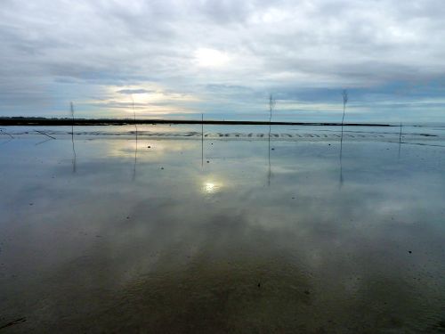Vorn ist die Fahrrinne für die Kutter abgesteckt, und direkt vor mir ist schon das Wasser abgelaufen.