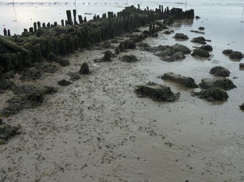 Und das ist die Spitze eines solchen Pfahls. Allerdings wurden große Teile inzwischen durch Metall und Beton ersetzt.