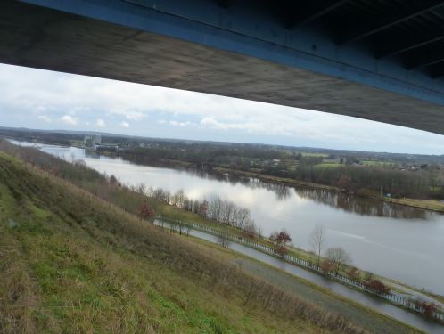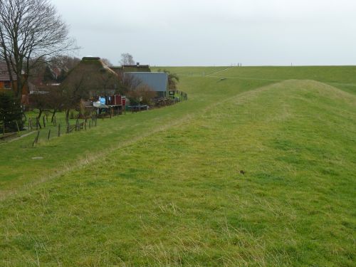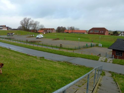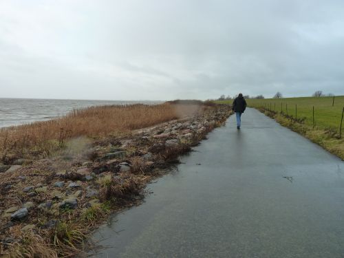 Um 11:00 war eine kurze Regenpause und ich nutzte die Gelegenheit und ging auf den Deich Schiffe gucken und den Hund leeren. Keine Menschenseele sieht man hier.