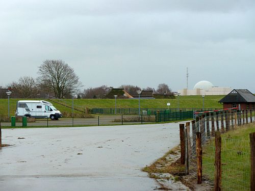 Bruno hat Stehohren, und außerdem hat ihn der Wind total vollgepieselt. Und jetzt gibts auch Bilder vom Stellplatz, mit dem AKW im Hintergrund.