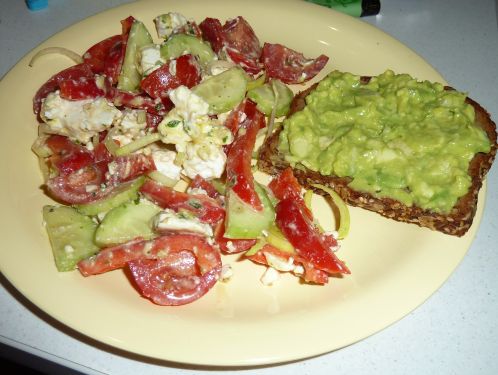 Heute gibts für Peter Pfannengyros vom Aldi, und ich mansche mir eine Avocado auf 2 Brote.
