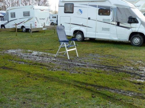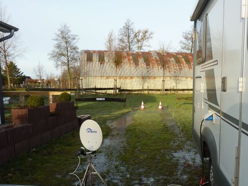 während sich der Stellplatz immer mehr füllt. Jetzt ist auch der letzte Matscheplatz besetzt, und seit ner halben Stunden rangieren hier zwei Dickschiffe in der Einfahrt herum, um dann tatsächlich in der Einfahrt zu parken.