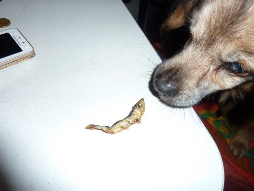 Und weil Bruno so brav daheim gewartet hat, kriegt er auch ein Fischli.