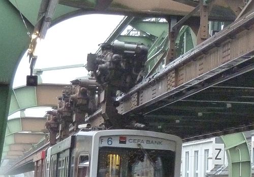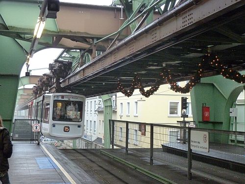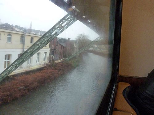 Jetzt gehts wieder zurück, und nach dem Aussteigen sehe ich, wie die Schwebebahn schwebt.