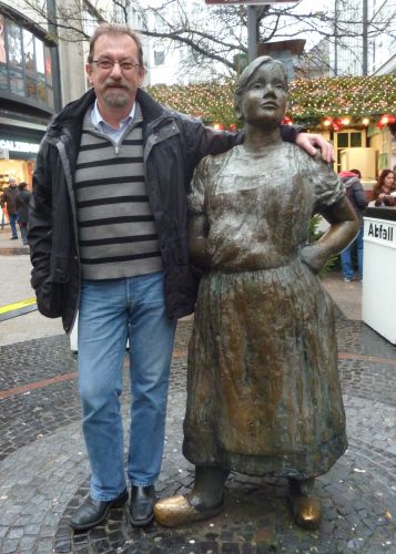 Aber zuerst ein Foto mit Mina Knallenfalls, einem Original Wuppertals, die als Romanfigur die Rolle der Frauen vor 200 Jahren verkörperte.