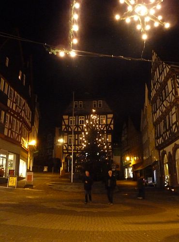 Erstes Ziel ist der Weihnachtsmarkt in Wetzlar. Den stell ich mir herrlich vor in den Altstadtgassen. Aber die Ernüchterung kommt schon, als wir den Stellplatz ansteuern.