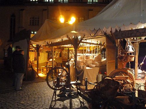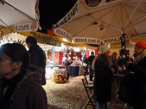 Am Schillerplatz finden wir den Weihnachtsmarkt. Er besteht aus einem "Weihnachtsdorf " mit einem beheizten Zelt und 2 Fress- und Saufbuden.