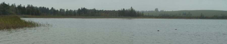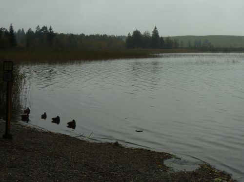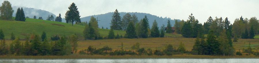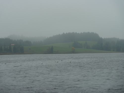 Jetzt stehen wir vorn am Wasser, haben Sicht auf den See, soweit der Nebel es zulässt, und alles ist gut.