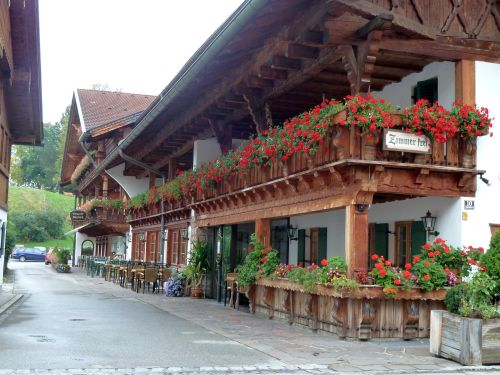In Schwangau schauen wir uns die blumengeschmückten Häuser an,