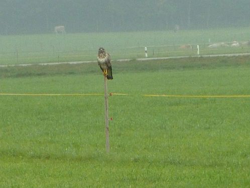 und hier auf den Stalldach hat sich ein Falke niedergelassen.