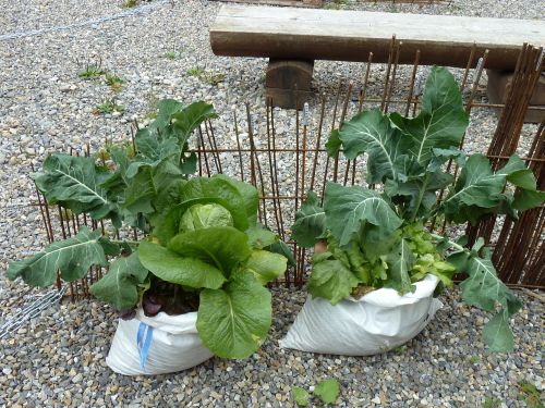 Grundschüler haben in Säcken und Körben Gemüse gepflanzt und zeigen, dass auch so überall gegärtnert werden kann.