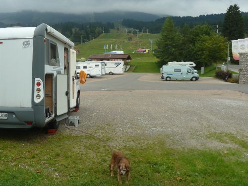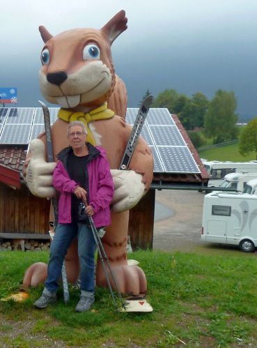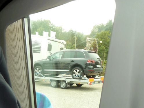 Den Rest des Nachmittags sitzen wir vorm Womo in der Sonne, beobachten die ankommenden und wieder abfahrenden Womos. Manche sind wirklich frech, und einer versucht mit Anhänger rückwärts neben unsrem Nachbarn in die 3m breite Lücke einzuparken und die eilig zusammengelaufenen Kollegen können gerade noch verhindern, dass er mit dem Hänger das Nachbarwomo demoliert. Ganze 15 cm waren noch Platz.
