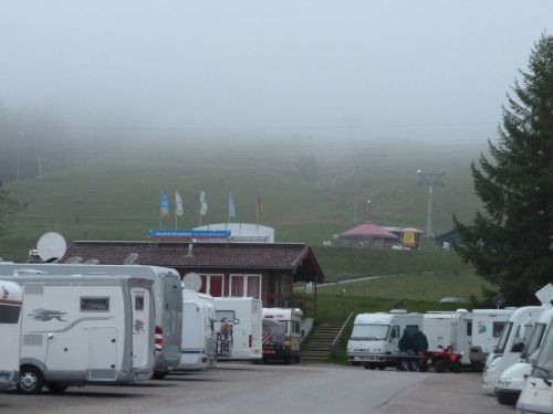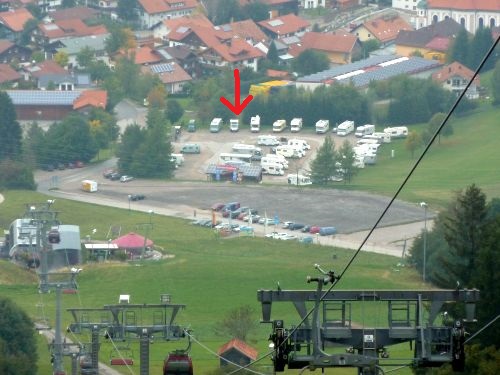 Glück gehabt, die ersten sind schon abgefahren und der große Run auf die Randplätze hat noch nicht begonnen. Unser Bergblick ist unverbaubar, denn auf der Straße wird hoffentlich keiner parken, obwohl man das hier nie so genau weiß, denn der Platz ist bei den Linerfahrern sehr begehrt. Gibt ja nicht viele Stellplätze für so lange Fahrzeuge.