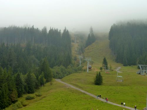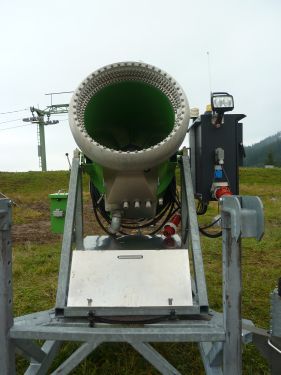 Und dann sind wir auf der Mittelstation, sehen sogar unsren Knavanti, der inzwischen Gesellschaft bekommen hat, und dann gehts paar Schritte höher, wo die Schneekanonen schon brav auf ihren Einsatz warten. Weiter hoch fahren macht keinen Sinn, denn die Wolken kommen immer näher.