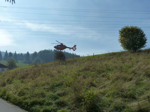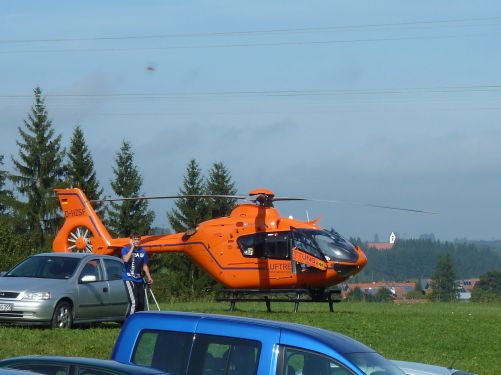 Inzwischen ist hier die Luftrettung gelandet und der Notarzt behandelt jemanden im Krankenwagen. Scheint aber nicht schlimm zu sein, denn kurz drauf verschwinden Polizist und Arzt wieder im Hubi.