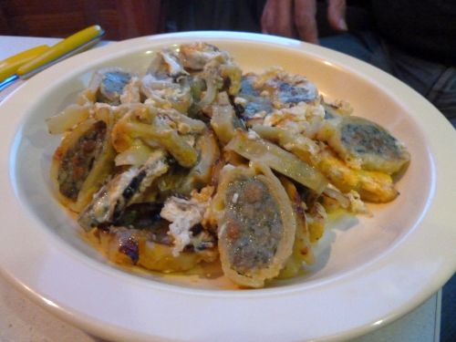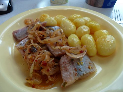 und dann wars schon Zeit fürs Abendessen, Maultaschen mit Zwiebeln und Ei.