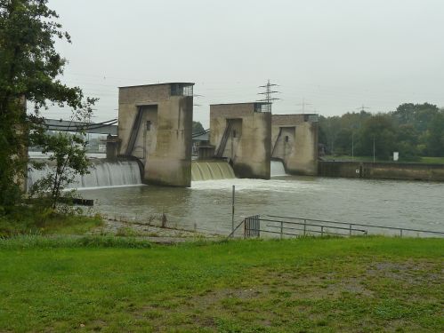 An der Schleuse gehen wir runter ans Wasser und durch die nassen Wiesen wieder zurück zum Platz. Hier stehen viele Nussbäume und alles liegt voller Nüsse. Schade, dass ich keine mehr mag. Sammeln hätte sich gelohnt.