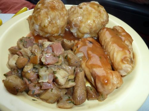 Jetzt ist mein Knödelteig gut durchgezogen und ich fang an zu kochen. Es gibt Steinpilze und Involtini dazu.