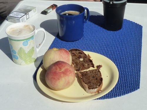Und wie wir es verdient haben scheint wieder die Sonne. Ein Traum. Sie zaubert Peter einen Knausbauch durchs Sunroof.