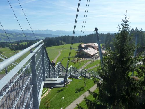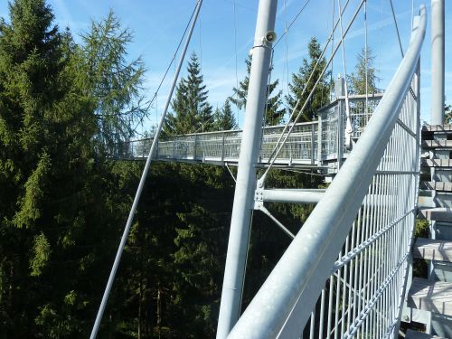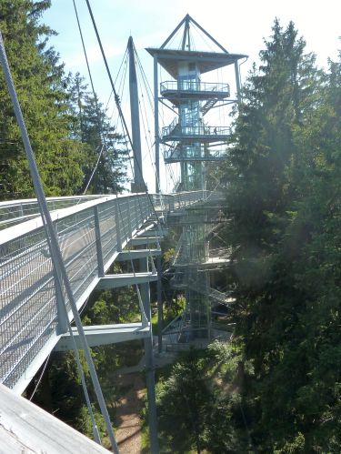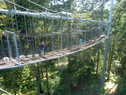 Der Baumwipfelpfad ist teilweise 40 m hoch und geht über 540 m Länge. Aber wenn ich immer nur das nächste Stück schaffe, wirds gehen.