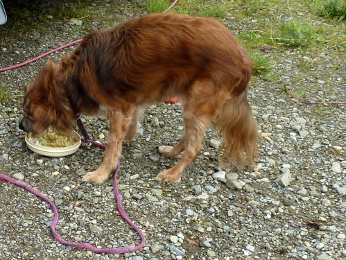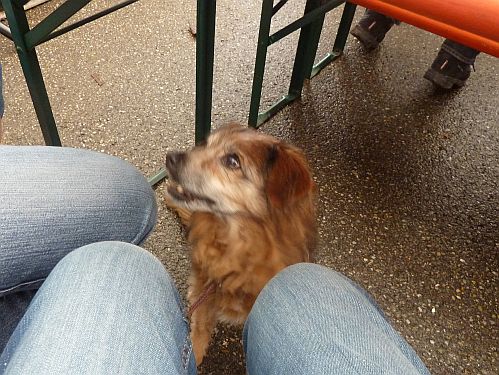 Bruno wird abgefüttert, es gibt Stinkepansen mit Nudeln und Gemüsepampe, und wir gehen ohne ihn in den Schwabenhof, denn er ist platt und darf jetzt schnarchend die Eindrücke des Tages verarbeiten.