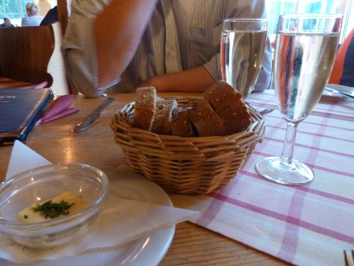 Vorm Essen melden wir uns schnell an und dabei wird auch das Geburtsdatum erfragt. Peter bekommt gleich mal förmlich gratuliert, und später beim Essen kommt mit dem Amuse-Gueule der Geburtstagssekt gleich mit.