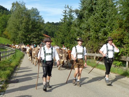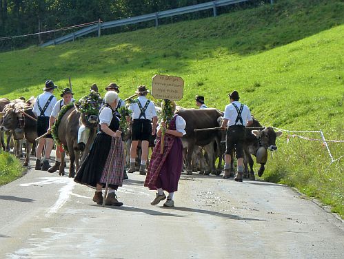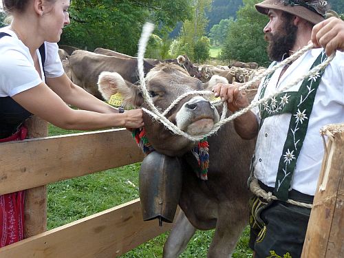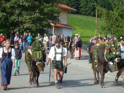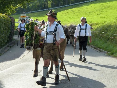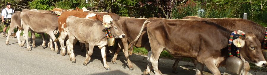 Nun zieht sich der Himmel zu und wir starten in Richtung Missen. Laut Landkarte scheint es ein winziger Ort zu sein, und vielleicht haben wir dort mit dem Almabtrieb mehr Glück als bei der Großveranstaltung in Obermaiselstein.