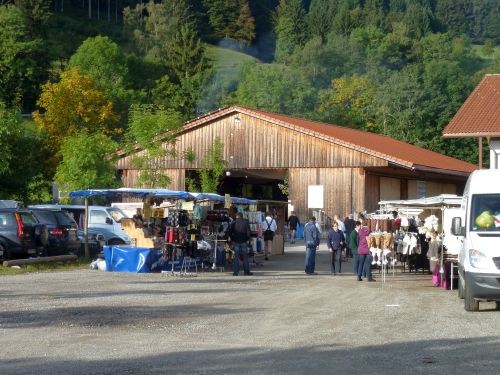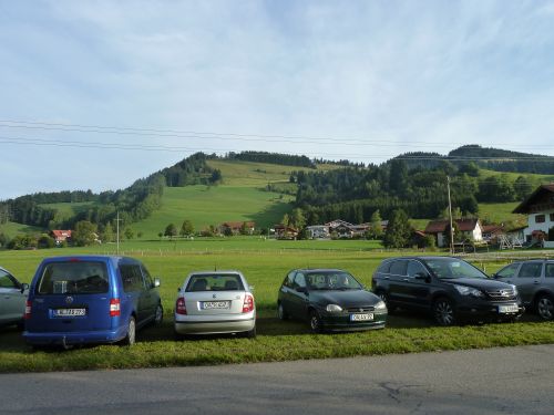 und kurz drauf landen wir schon in Missen. Der Viehscheidplatz liegt direkt vor dem Freibad, und für uns bietet sich der Freibadparkplatz an, denn bei dem Wetter geht eh keiner schwimmen.