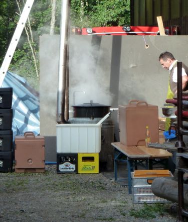Die beiden wollen wohl was ab haben. Vor und in der Scheune gehts nun auch hoch her
