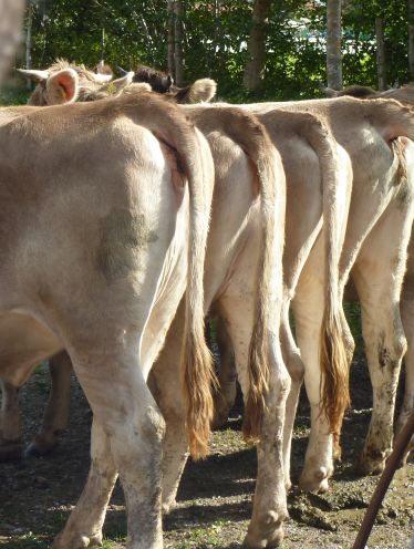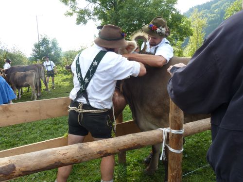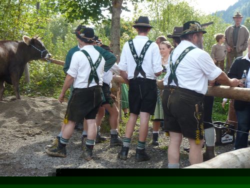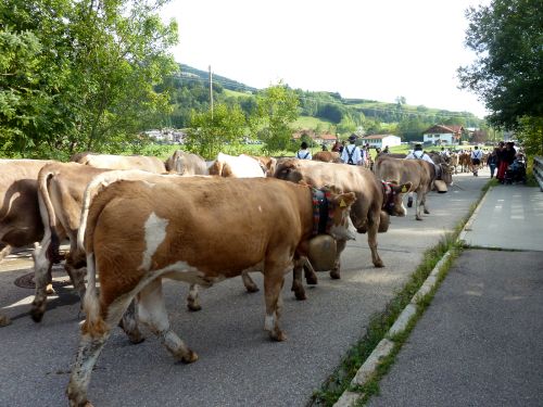 Und manchmal wirds ganz schön kritisch am Straßenrand, denn die Kühe traben in ordentlichem Tempo die Straße runter und sind vor der Zielgeraden nur schwer abzubremsen. Dann laufen sie kreuz und quer und die Zuschauer müssen flüchten und die Hirten haben alle Hände und Füße voll zu tun, die Meute in den Griff zu kriegen.